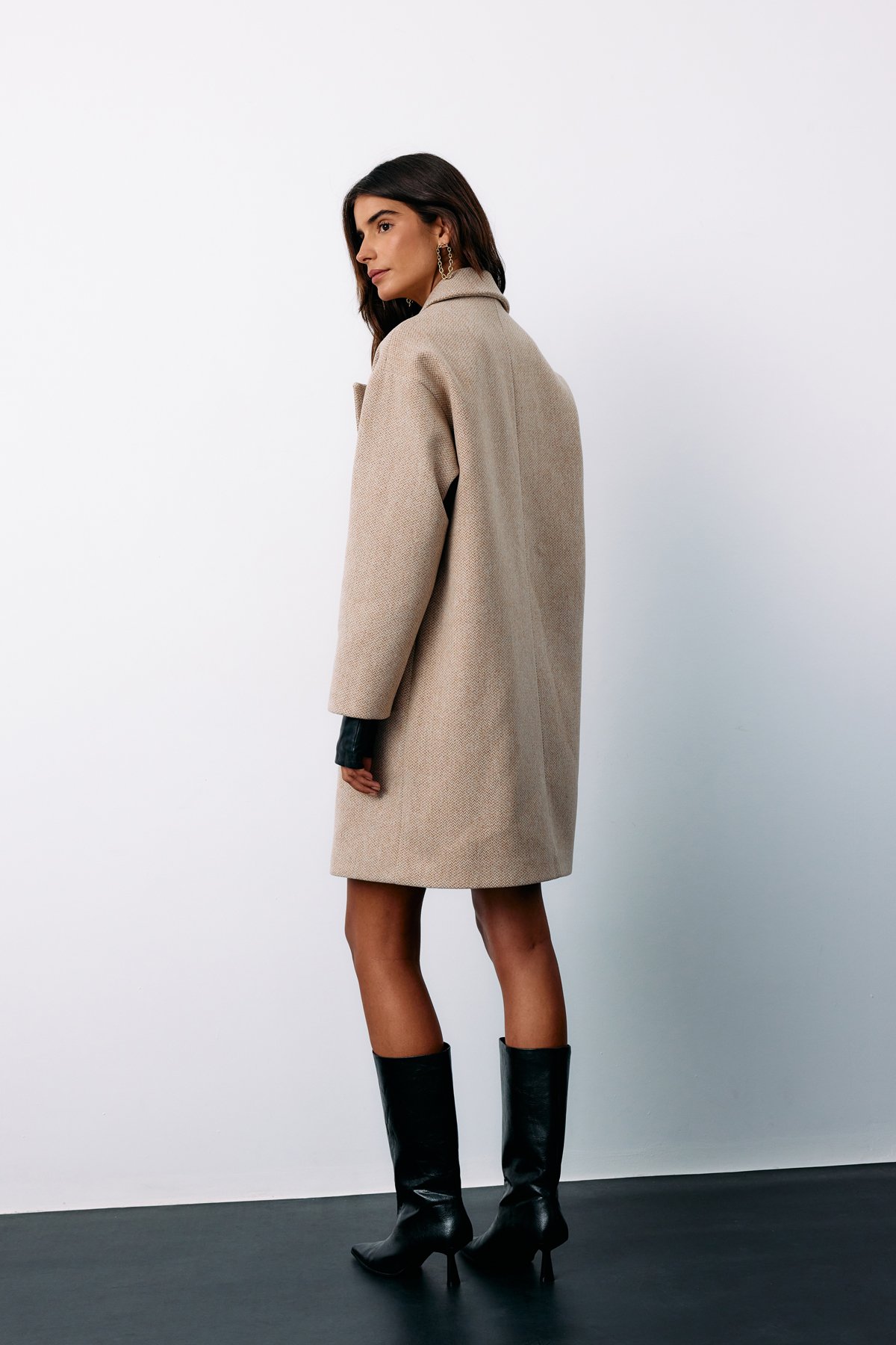 Modern siluetlerle klasik dokunuşları birleştiren bu kısa kaban, gardırobuna fark katacak bir parça. Kendinden desenli dokusu ve camel tonuyla, hem şehir stiline hem de hafta sonu kaçamaklarına harika eşlik ediyor. Geniş kruvaze yakası ve süs cepleriyle tasarımı monotonluktan uzaklaştırıyor; iç astarlı yapısı ise sıcaklık ve konfor vadediyor. Ön düğmeli ve çıtçıt kapaması sayesinde hem pratik hem de şık — üstüne düşeni fazlasıyla yapıyor.