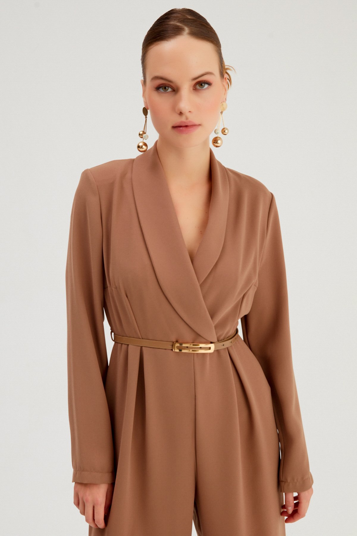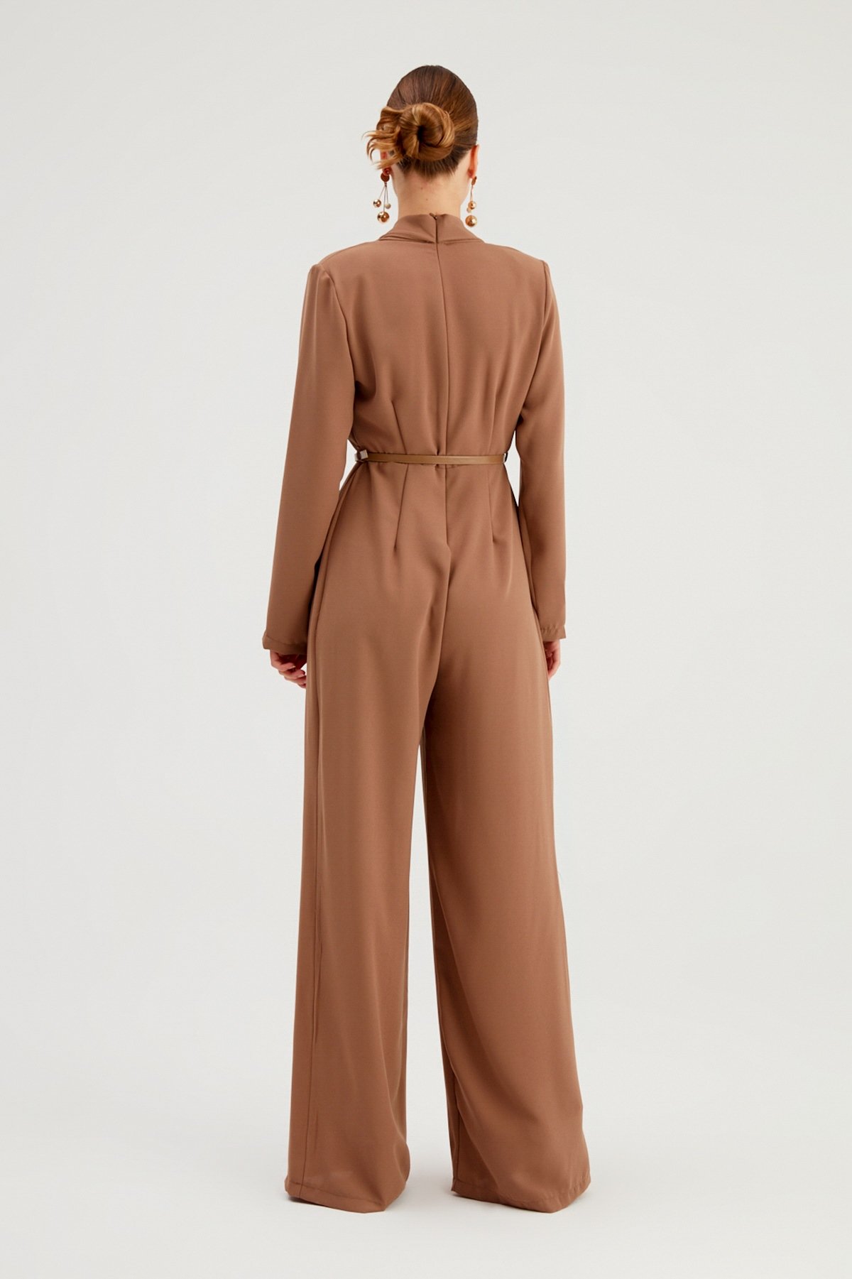 Şık ve rahatlığı bir arada sunan bu kemerli salaş tulum, sıcak Kahve tonuyla hem zarif hem de modern bir havası var. Döşemesinde yumuşak kemer detayı sayesinde bele hoş bir vurguda bulunurken, salaş kesimiyle konfor sunuyor. Hafif, dökümlü kumaşıyla hareket özgürlüğü yüksek; günlük kullanımda da özel davetlerde de rahatlıkla tercih edilebilir.