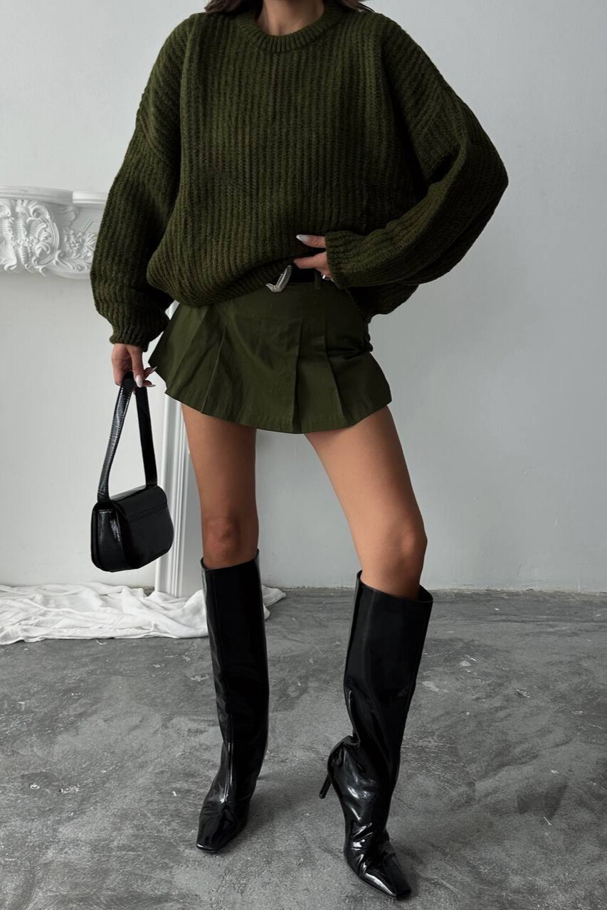 Yumuşak dokusu ve bol kesimiyle konforu şıklıkla buluşturan bu kazak, bisiklet yaka ve düşük omuz detaylarıyla modern bir görünüm sunar. Her kombine uyum sağlar.