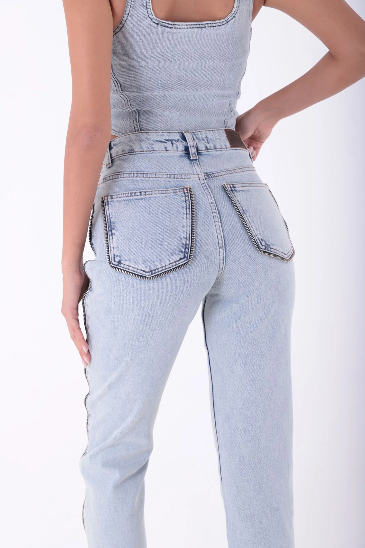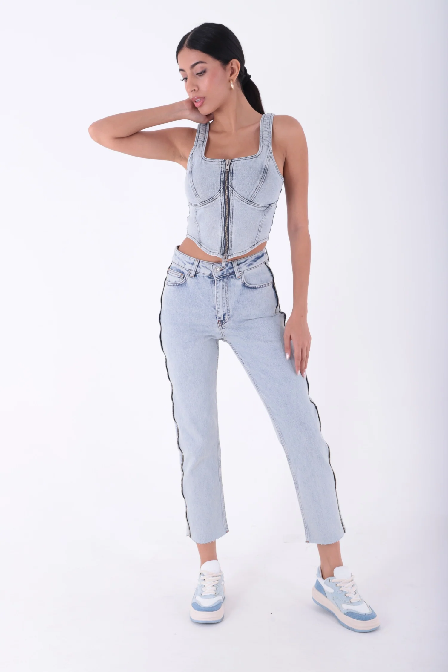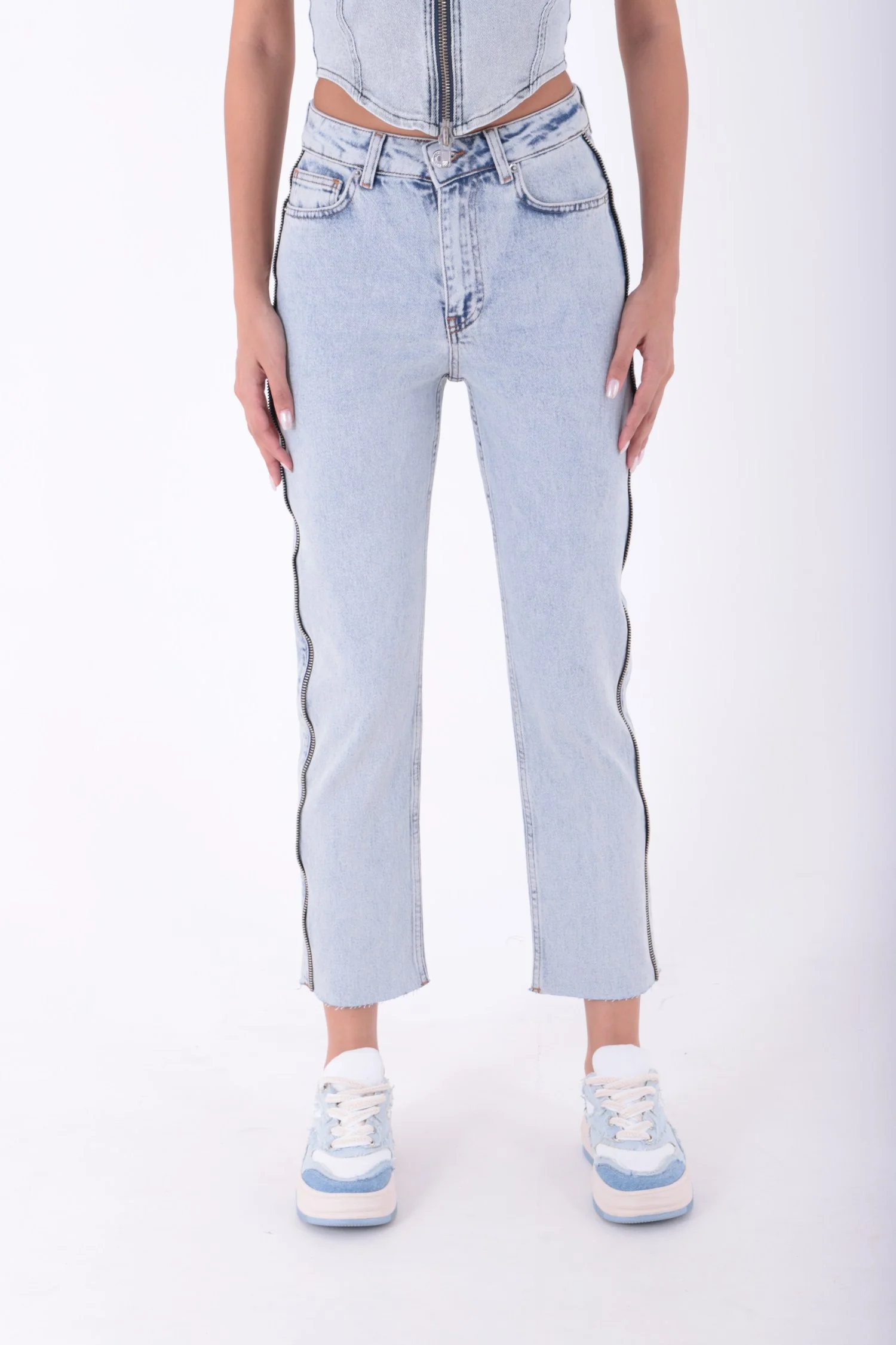 Yan şerit ve fermuar detaylarıyla klasik kotlara modern bir dokunuş katan bu pantolon, hem günlük kombinlerde hem de sokak stilinde öne çıkar. 26-31 beden aralığında sunulan model, açık mavi tonu ve rahat kesimiyle şıklığı konforla buluşturur.