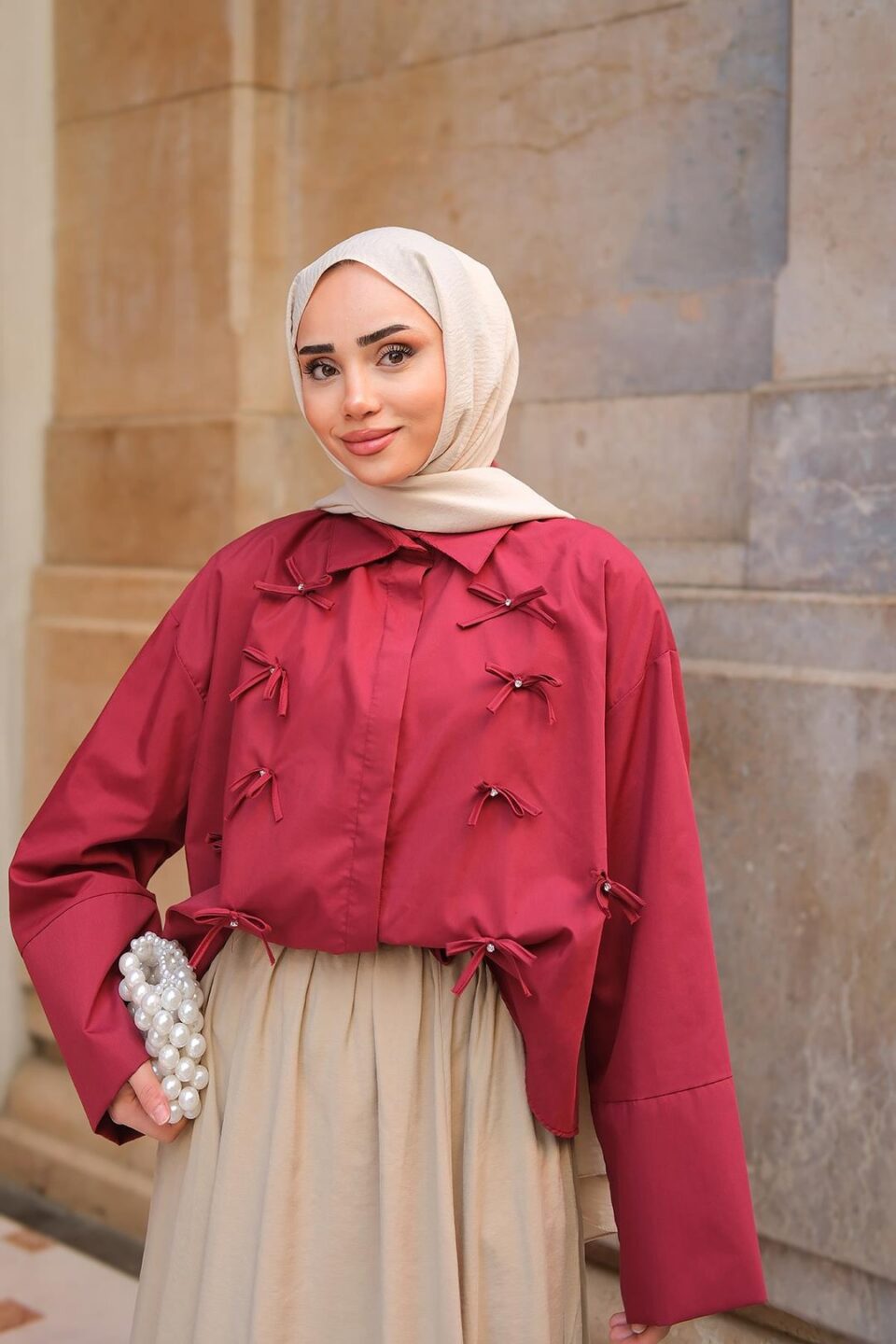 Arkası Katlı Büzgülü Gömlek